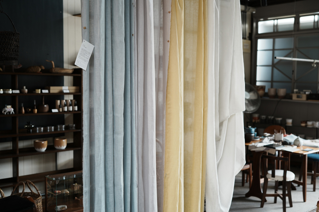 またカーテン生地を活かしたプロダクトやハギレの販売もありますので心地よい春の陽気を身体で感じながら、ぜひゆっくりとお過ごしください。